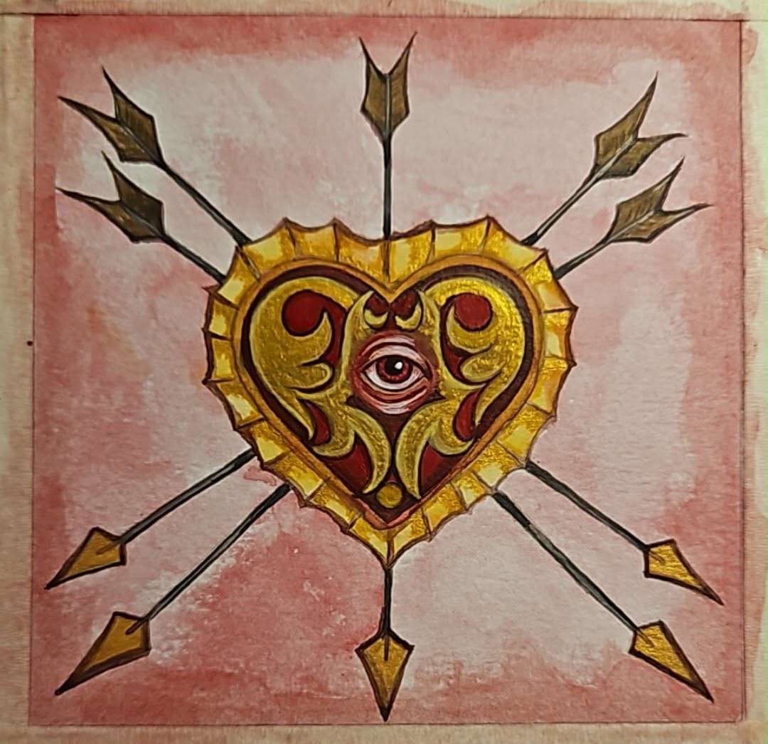 A classic Heart ran through with many arrows. A vintage look that works for Valentines Day or any day really. 5x5" on heavy water color paper.